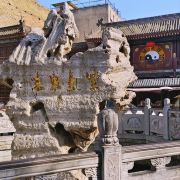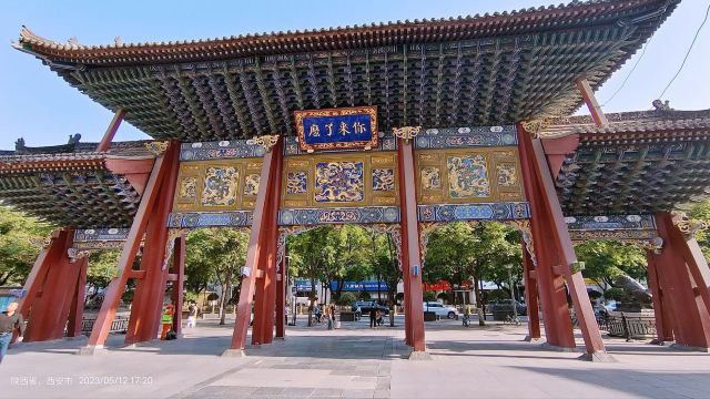 5分 超棒西安都城隍庙位于西大街鼓楼以西,山门牌楼在路北临街。斗拱下高悬蓝底金字金边牌匾,牌匾下方金漆描龙,彰显都城隍庙的大气和威严,规格堪比皇家宫苑。有一对铜狮镇守山门,牌楼背面高悬“你来了么”道教敬语,就好像是“你从哪里来,要到哪里去”一样的灵魂拷问。牌楼后建有骑楼,双狮前赑屃驮着高大的石碑分列左右。骑楼主匾:天道酬勤,紫气东来和道通天地分悬东西。
