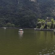 山崩形成的天池堰塞湖,湖面宽广,租上一艘小船,泛舟湖面,确实是件再惬意不过的事情。