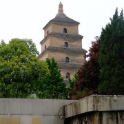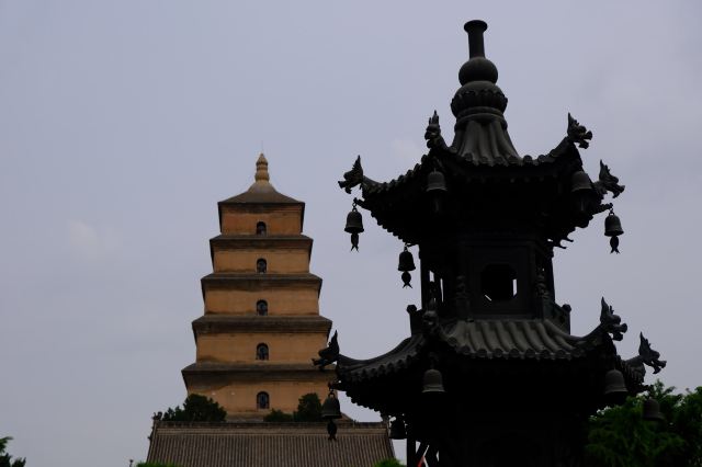 大雁塔,位于市区南部大慈恩寺内。大慈恩寺是唐代长安城内颇为宏丽的皇家寺院,建于唐太宗时期,是太子李治为了追念母亲文德皇后而建,并由西行取经归来的玄奘法师担任“首任主持”。期间,法师督造了大雁塔。