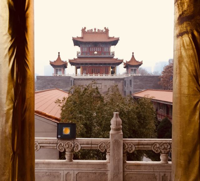 西五台云居寺位于西安市莲湖区洒金桥十字路口往南,近古都大剧院,从回民街出来步行不远即可到达。这里为唐长安城内太极宫宫城南墙所在地,由于历代城墙不断倾圮,形成从东至西延绵起伏的五个高台,宋朝时在此修建寺庙,根据其地形,称此寺为西五台。