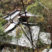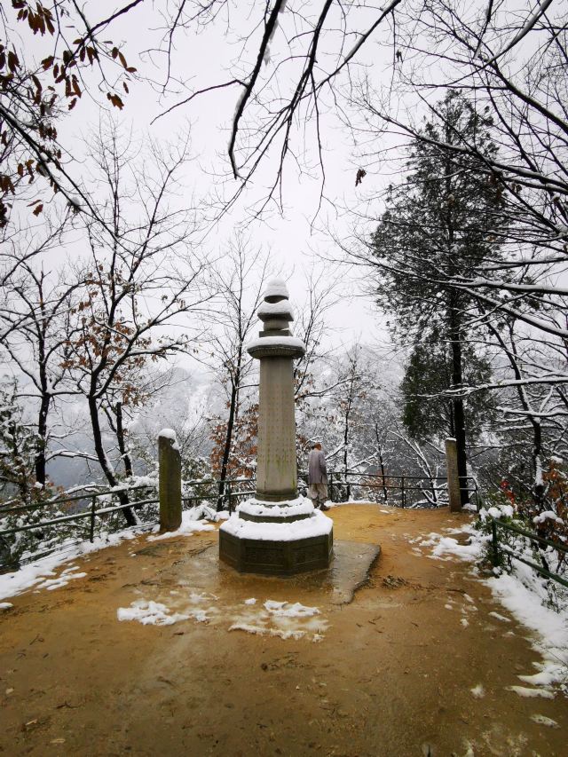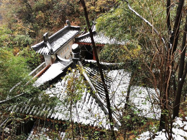 但,越似这种环境,越需要一颗静心。同行伙伴说,守得住清贫、耐得住寂寞,方能感受这山中春华秋实。深以为然。寺庙寂寥的岁月,仿佛给山间万物也定格了时光,秋叶依依不舍地赖在青阶上、藤蔓也在树梢下欢唱着冬雪,好似《冰雪奇缘》中,雪宝在夏威夷海滩,仰望阳光,眯起的眼睛中藏着一个透亮的世界。