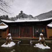 4分 满意从净业寺山门爬山,沿途风光优美,处处体现禅境悠远。上山的路还是好走的,台阶路,坡度缓,基本上用半个钟头就能登上这座千年古寺。青砖灰瓦,绿树掩映下的净业寺古朴依旧,鼎炉的香火轻轻袅袅,诵经的僧人盘腿打坐,一切都是那么的平和,静静得呆上一会儿,心也跟着平静了下来。寺内有许多碑石、楹联、牌匾,都十分有底蕴,其中就有赵朴初老先生的手笔“依无上觉”、“律宗祖庭”,“净业寺”三字描金匾额据说为南怀瑾老先生所题,字体饱满,笔法遒劲,值得细细品味。