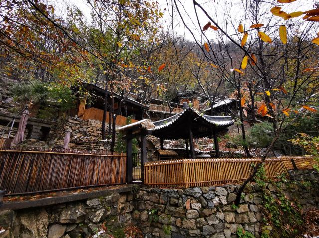 净业寺是户外运动爱好者的的线路之一,从山门沿着山路拾级而上,大概半个小时就能到达,然后继续往上攀登,越过山顶就进入黄峪,这条线路相对较短,一般是一天的路程。