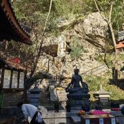 5分 超棒秦岭山脚下的古寺~绝对值得一去!停车不太方便,过净业寺的山下上门一点有一个很小的停车场,我们去的时候运气还不错,就只剩下最后一个车位;需要爬山上去,不算高但登山石梯路不规则~比较废脚,登顶需要半个小时(若鞋子没穿对或体力差的需要更多时间);沿途植被很好所以虽炎炎夏日但消耗不算大,一路上还能看到很多摩崖石刻,增加了爬山乐趣;一点商业味都没有的古寺,自取三根香,布施随缘~符合佛家的本色;庙里是看到两只猫(基本上被喂饱了),但没传说中的很多猫,倒是山下入口的一只猫很可爱,特别喜欢吃小蛋糕,孩子投喂了不少