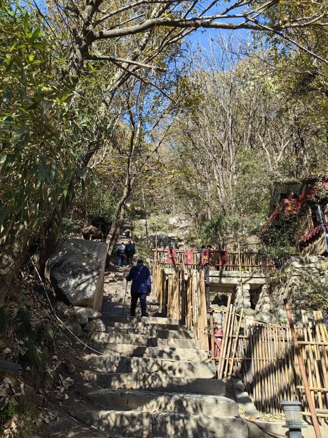 4分 满意净业寺的山门虽然在210国道边儿上,但是整座寺庙位于半山腰上,想要入寺得先爬山。这段爬山之路,快则半个小时,慢则一个小时,就能抵达。沿途都是石台阶,且修有铁质栏杆,难度不大,很适合想要爬山练腿的游客。