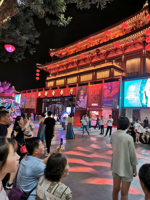 1、“西安音乐厅”、”位于“大唐不夜城”是全国唯一的以盛唐文化为主题的仿唐代步行街,融合了雍容华丽的唐风和青春时尚的潮流,汉服美女云集,夜间的演出精彩纷呈,是西安旅游必打卡的夜景名片,全街长约1500米,集表演、逛街、夜景、文化于一体。景区在5A景区大雁塔脚下,由“玄奘广场”、“贞观广场”、“开元广场”3部分组成,是开放式景区,免费。