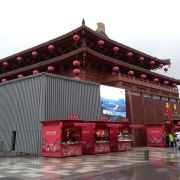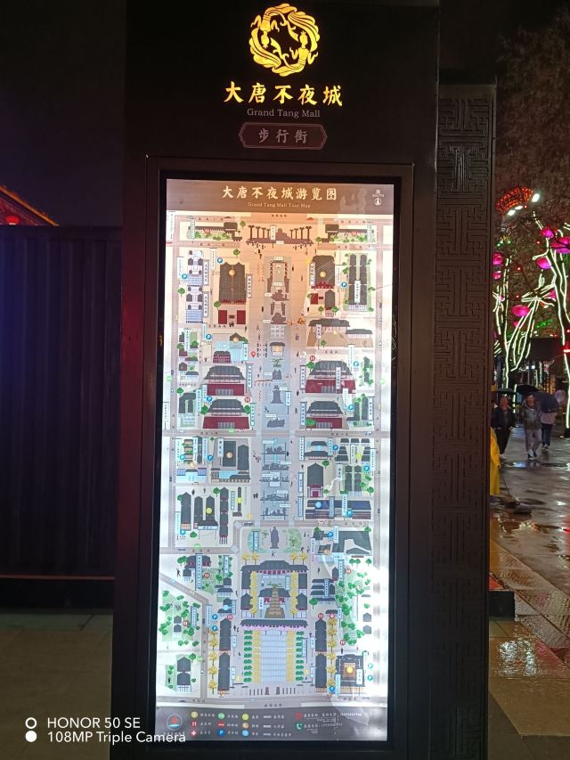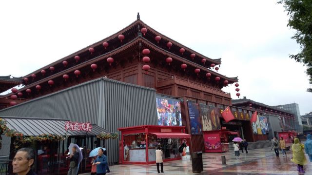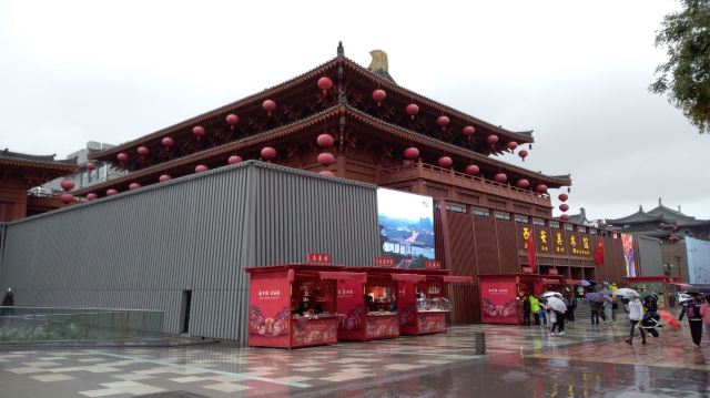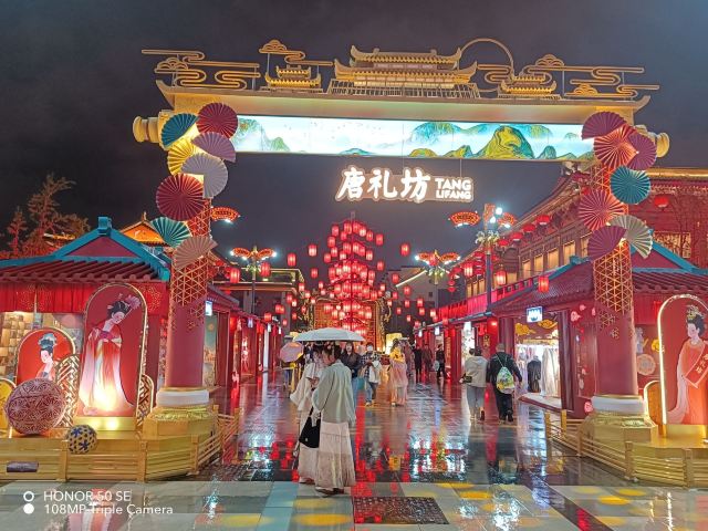 2、贞观广场下的两侧分出一条东西巷的小街“唐礼坊”,以商品和饮食为主,街的南北侧分别连通了分布贞观广场4个角落的“西安音乐厅”、“陕西大剧院”、“西安美术馆”和“曲江太平洋电影城”。