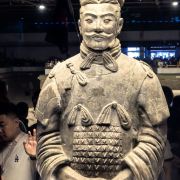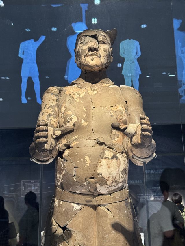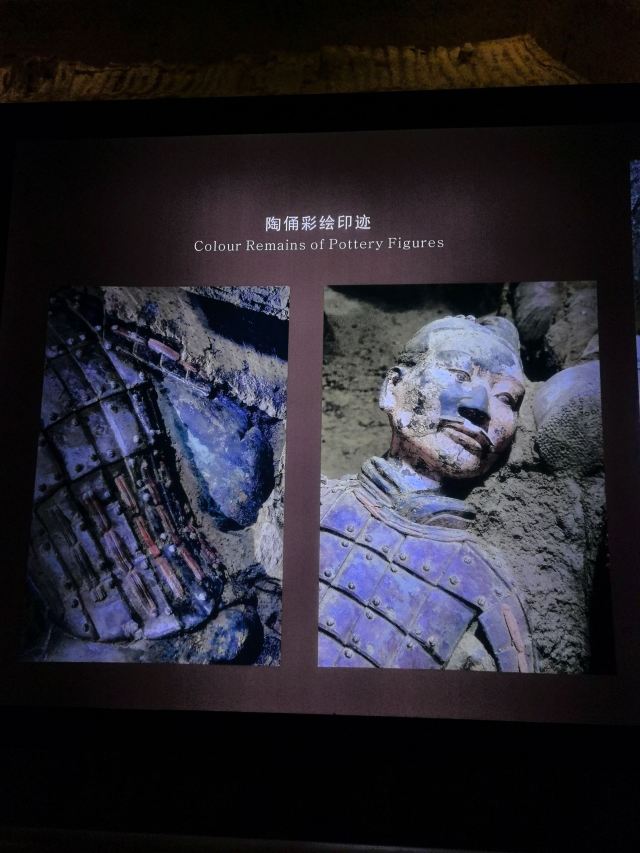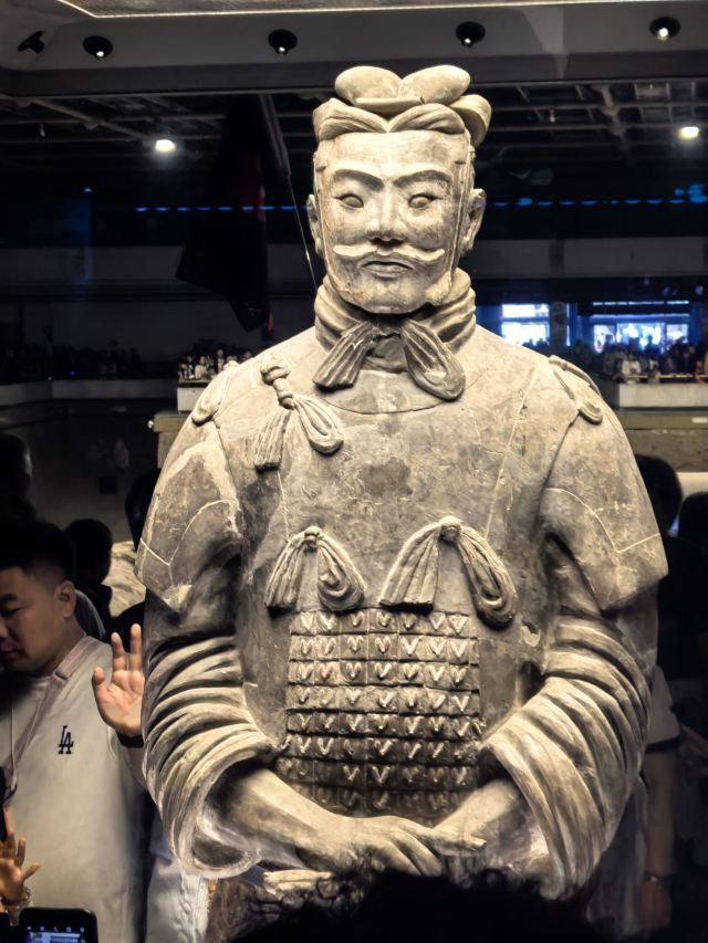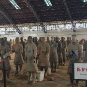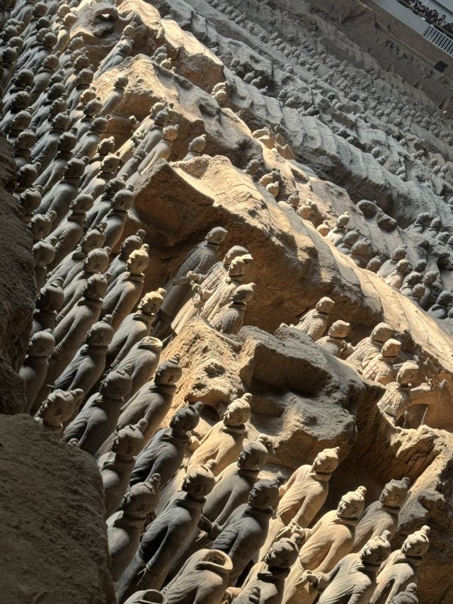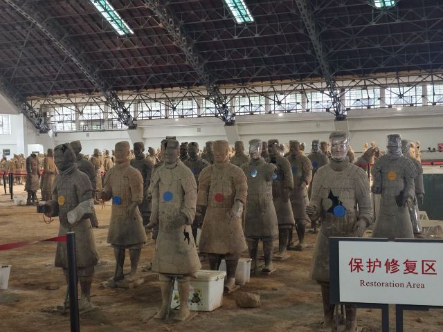 一号坑也是目前拼凑完成较令人震撼的一个展厅,你可以看到庞大的士兵陶俑军队矗立在俑坑内,形态各异,据说光是胡子的造型就有三十多种。仔细观察,每一个士兵都栩栩如生,从盔甲到表情,从武器到手掌上的纹路,无一不令人惊叹。