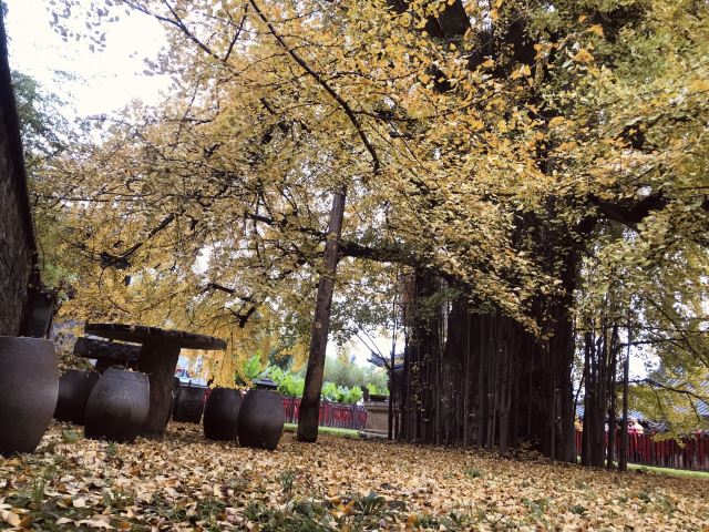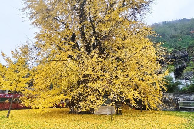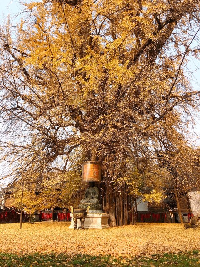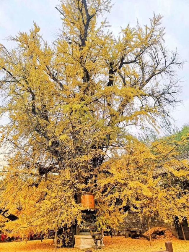 寺内有一棵千年银杏树,据传是当年唐太宗李世民亲手栽种,现已被国家列为古树名木保护名录。深秋时节,银杏树满目金黄,一阵风吹过,黄叶漫天飞舞,落地宛如金毯,吸引无数游客前来参观游览。