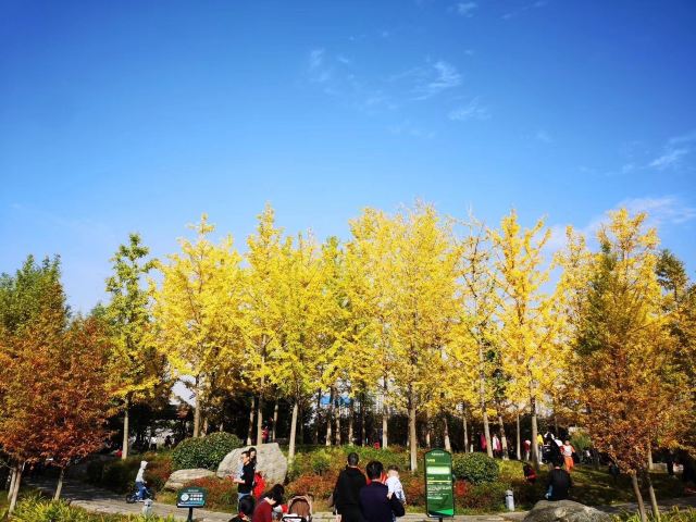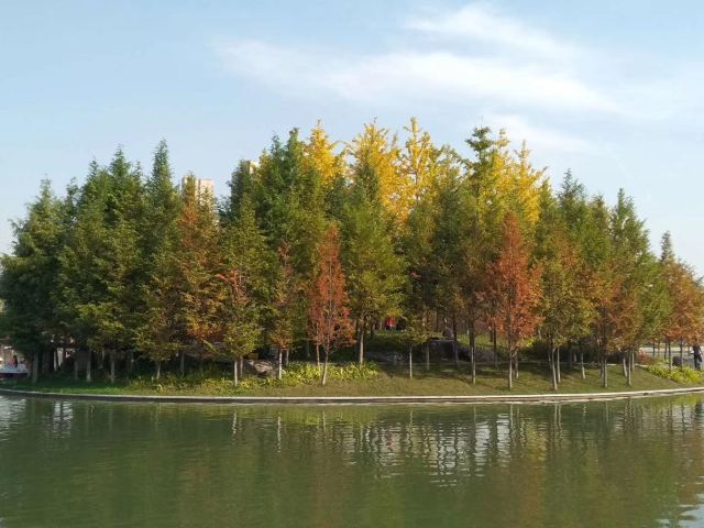 5分 超棒雁鸣湖,一个岛是炽红,一个岛是橙黄,在蓝天和明媚的阳光下格外醒目。景色优美的雁鸣湖在西安的东郊,是一个免费的公园,湖中鱼儿自由自在的游荡,一个美丽的地方。