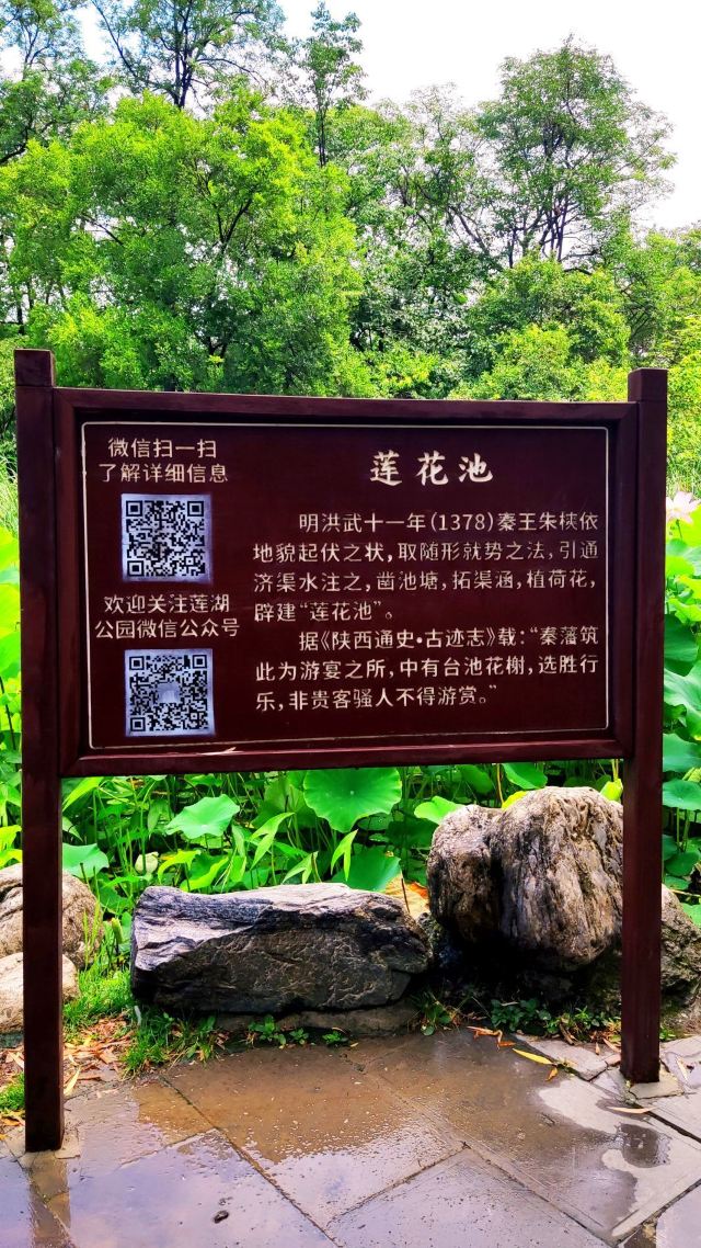 公园坐落在唐代宫城承天门遗址上。明代秦王朱爽(朱元璋次子)在这里建造了王府花园。因开凿人工湖,广植莲花,名叫“莲花池”。1916年辟为莲湖公园。