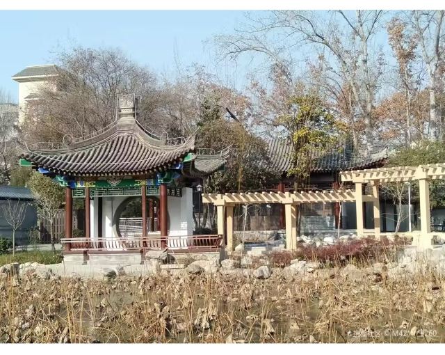 公园的北门,为传统建筑,古朴典雅。园内水面分成南北两湖,南湖水深较大,可荡舟游览;北湖水浅较小,种植着莲藕。北湖旁有“荷院”,建筑高低错落,中有荷池。北门内东侧有棋院和“小萝卜”塑像。南湖岸西有茶社和八角亭。承天阁为园内主要建筑,此外有图书楼和儿童游乐场等。