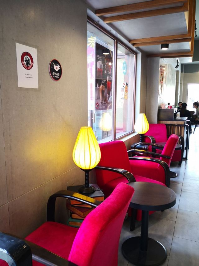 太平洋咖啡开在诗经里确实有些意外,商铺位于在诗经里的湖边,门口有三个景观位置,可以晒太阳,可以看湖边风景,这么好的位置基本上都是被占着的;