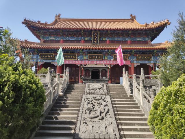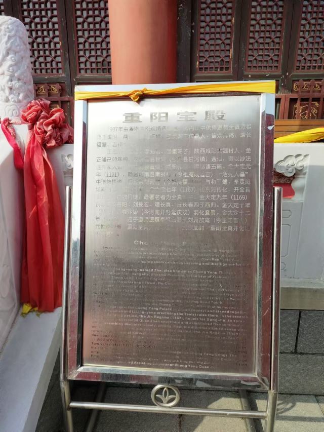 4分 满意本人爱好古建筑,收藏了重阳宫好久,这次寒假来西安专门自驾1个小时来看重阳宫。重阳宫是道教全真教的祖庭,王重阳及其徒弟都在此待过很长时间,王重阳的活死人墓在这附近2公里左右的地方,主殿后有重阳宫碑林,屋里有数十方石碑主要记载重阳宫历代主持。重阳宫对面的广场很热闹。