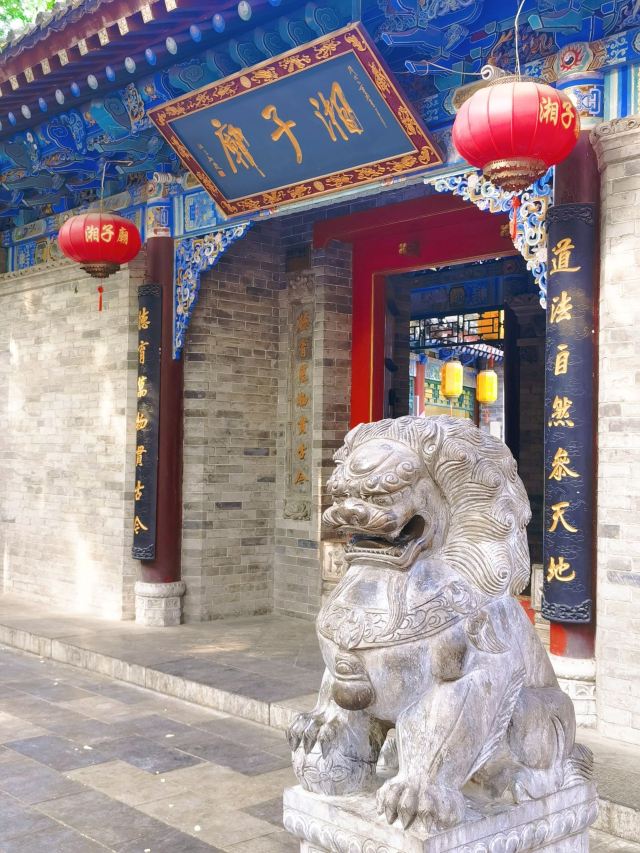 📸从湘子门步行进入湘子庙,周边有很多店铺,咖啡店、面包店、茶店、料理店等一应俱全。湘子庙门口墙下拍照非常好看,之后可以进入庙内拜一拜。