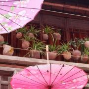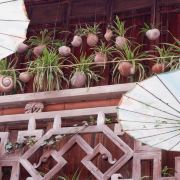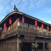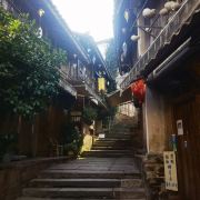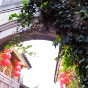 古城并不算大,纵深大约1.5公里,沿着石板路步行即可。这里没有江南古城的精雕细作,大部分是古朴的木质建筑,沿路是古色古香的房屋,挂着许多彩色的鱼灯笼,家家户户的窗户上点缀着用贝类和绿色植物做的小装饰,很是别致。更为难得的是,这里还住着不少居民,很有生活气息,拍出的照片也很有味道。