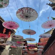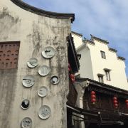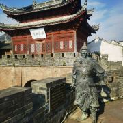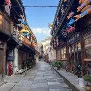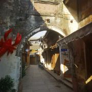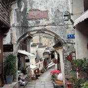 再往前不远,过瓮城,便到了中街,这里是整个古城主要的商贸街,渔商气息十分浓厚。特别的是,街上每隔50米有一座月洞式的封火墙,以往是为了防止火灾和盗贼,如今看来,它使街道多了几分错落和延伸感。当年这条街上商铺林立,如今沿街可以参观的展厅,如:宏章绸庄、中国纽扣展厅、源生钱庄、百船馆、大皆春、栽兴烟馆、乾大当铺等等,可以比较全面地了解当地生活的方方面面。