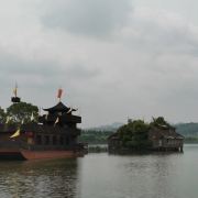 ①湘军桥:连接东山岛和东岸的多拱平直石桥,全长128米,两侧136块汉白玉栏杆上刻有湘军著名人物的手迹,桥中央有棕色双檐木制桥亭,从桥上看形似双箭头。湖中偶有水鸟游弋觅食。