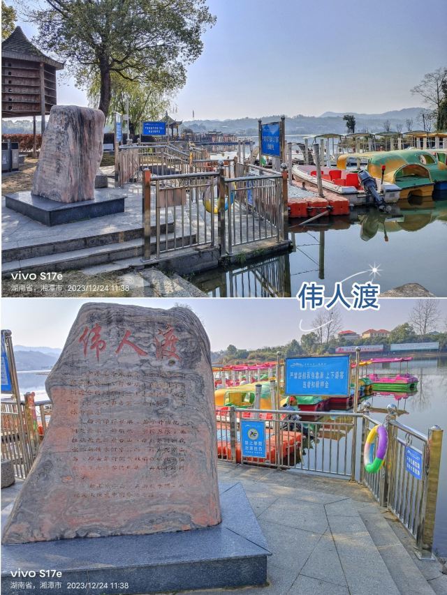 ⑤伟人渡:故事石碑,讲述了少年毛泽东在东山书院(4A)求学时,常和同学萧三、谭世瑛、萧子升等人来此游泳。