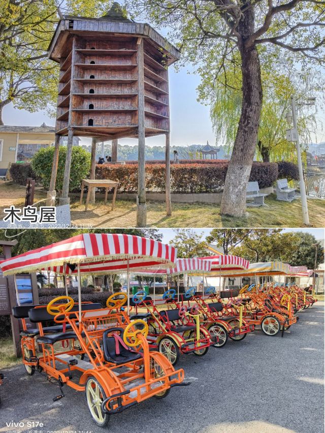 ⑥木鸟屋:伟人渡旁,6面6层,高高树立,每层1个洞,但不见有鸟出入。