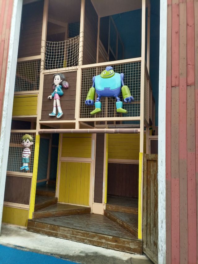 1️⃣右转首先会看到一个室内的探索基地,听劝,先别进去。等下午累了热了太阳晒了再来,放到最后一站最合适。