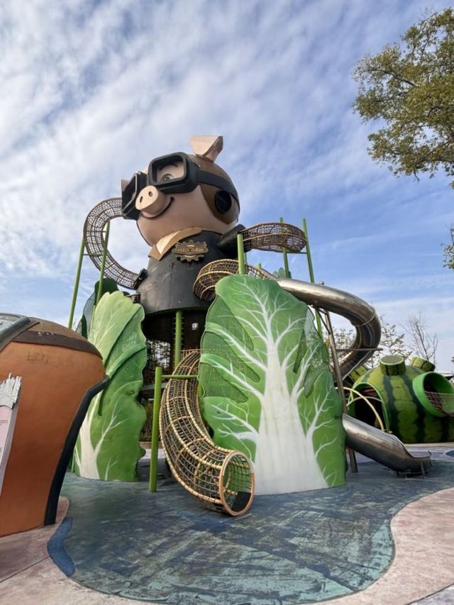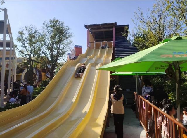 🗺️进园就会看到一个巨大的滑梯“勇气之冠”,1.1米以上才能玩。左手边是适合稍大一点小朋友的项目,索道划船骑车一类的。幼儿园小朋友可以直接右转啦👉
