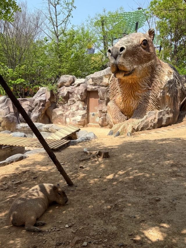 2️⃣沿着甘草之乡先看动物,上午会比较活泼。看“懒散”卡皮巴拉、“霸道”鹈鹕、可爱矮脚马等。