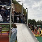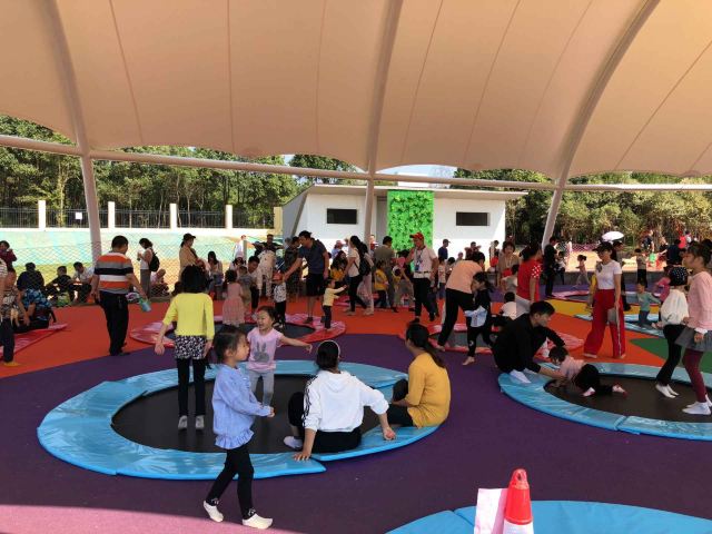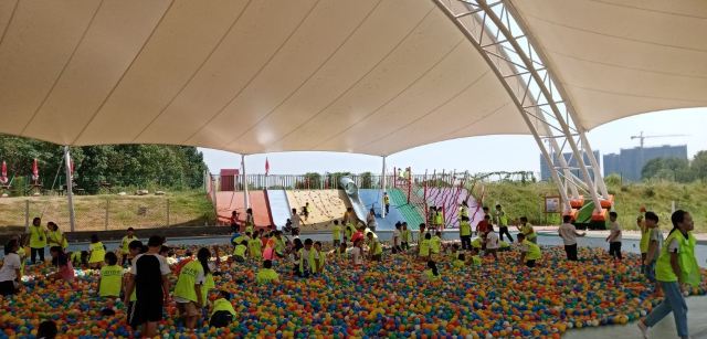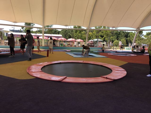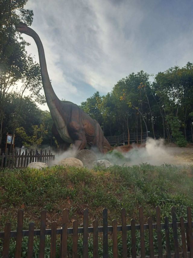 3分 不错景区大,但是没啥东西,空空荡荡的,塑胶地面还是有气味儿,今天还是阴天气温不高,大太阳天儿去气味肯定更大。所有项目都是露天的,滑梯是金属的,天热估计会烫屁股。海洋球那里放个喇叭一直喊中间有水不要到中间去,小孩子在里面玩也太不安全不卫生了。一只松鼠都没看到,唯一就是恐龙做的比较逼真。现场买票小孩120,大人80,这么贵不说,里面有三个项目:一个迷宫,一个射箭之类的,还要另外收费,真是无语了!我发句牢骚,说这么贵的门票这还收钱,服务人员居然不屑的说,你跟我们领导说去,跟我说有啥用!这态度也是醉人~