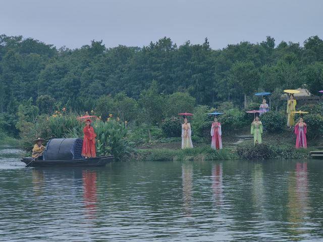 景区庞大的水利资源使得这里成为一片天然大湿地,湿地中大大小小共有12座岛屿分散开来,岛上分别种有水杉、牡丹、丁香、桃花、紫薇、玫瑰等数十种花草,它们可在不同季节呈现出不同美的美景。其中,水杉种植面积较大,一棵棵高耸入云、清秀挺拔,春夏为翠绿色,而到了秋季就变成了耀眼的红色,光彩夺目,吸引眼球。