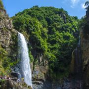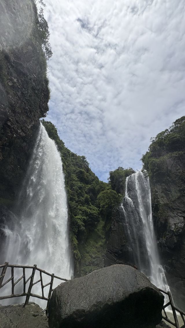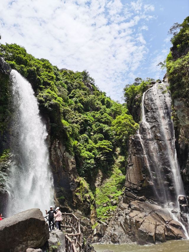 九鲤湖风景区与武夷山国家公园、玉华洞并称为“福建三绝”,以九鲤飞瀑、冰川峡谷、千年祈梦三大奇观著称,一直以来都有有“九鲤飞瀑天下奇”的美誉。旅行家、地理学家徐霞客游览后赞叹:“即匡庐三迭,雁荡龙湫,各以一长擅胜,未若此山微体皆也!”瀑布大小不一,大至一百多米,小到三、四米。瀑布漈高达百米,气势磅礴,珠帘漈从刀削斧劈般的千仞巨石上齐刷刷地滑下,形成万斛水珠,宛若垂帘;珠帘漈的东边,水从盘龙山顶贴着石壁慢慢滑下,形成两股晶莹的细流,看起来就像是玉琢的双柱,这就是玉柱漈。沿路在瀑布中穿梭,一会儿欣赏瀑布的气势磅礴,一会儿欣赏涓涓细流,感受扑面而来的凉意和小小水汽。