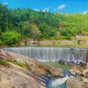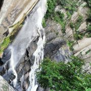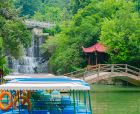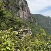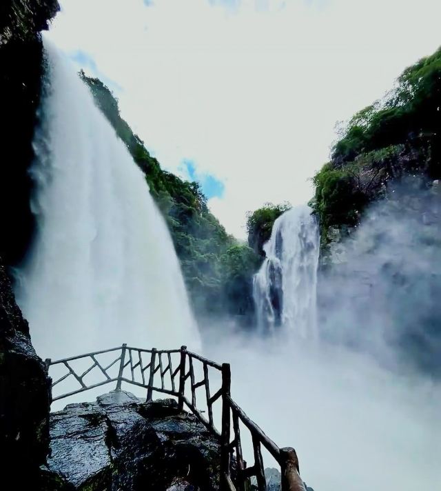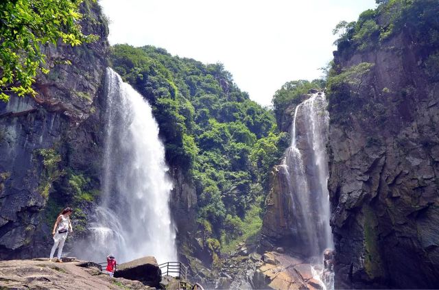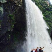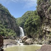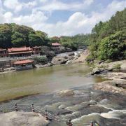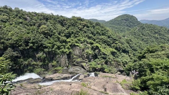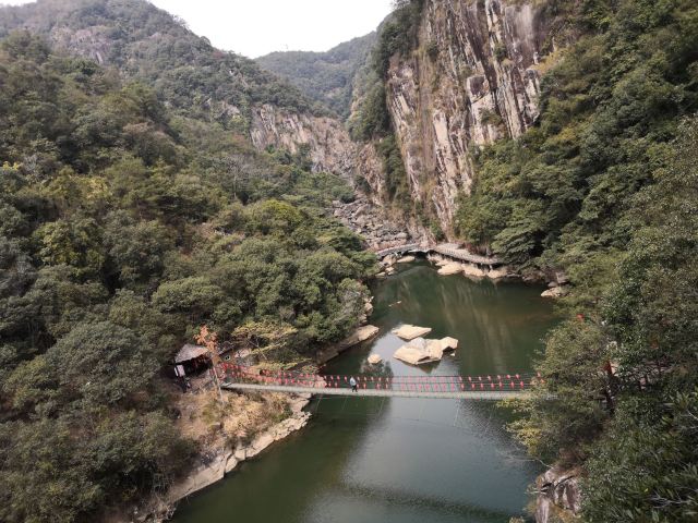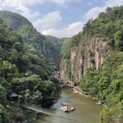 一般游人游完瀑布后便可走到九龙谷森林公园-铁索桥附近,乘观光车回到入口停车处,省时省力。若行有余力,也可以继续往深处走,还有生命之根、东风寨、泰坦尼克号等景点可看。此外,通仙桥头有家建在溪边的饭店可以用餐,油炸小溪鱼、炒竹笋等是当地的特色佳肴,可以尝试一下。