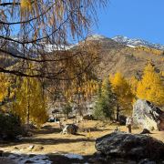 木骡子是藏民的夏季牧场,这个季节去有个藏民大叔在那儿放牛,顺便售卖一些饮料零食,还有泡面卖。冬季他们就转去暖和的冬季牧场了,就没人在了。木骡子营地也是长穿毕的第一晚露营点,是很开阔的一片大草坪,天气好晚上看星空应该很不错。