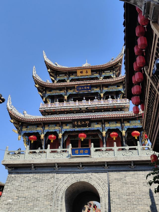 🚪一踏入古城,首先映入眼帘的便是那雄伟的城门和古朴的城墙,它们见证了岁月的变迁,默默诉说着往昔的故事。沿着青石板路漫步,仿佛穿越回了古代,街边的明清、民国时期建筑错落有致,繁复的木纹、雕花、石刻,无不彰显着能工巧匠的精湛技艺。古城以四牌楼为中心,四条主街向四方辐射,漫步其间,北街的老宅林立,透着历史的厚重;南街热闹繁华,“许锅魁”、姐妹油茶等老字号散发着诱人的香气;仓街新旧结合,一边是古韵悠悠,一边是现代生活;府街商铺云集,两棵大黄葛树下挂满了许愿带,充满了温馨的氛围。