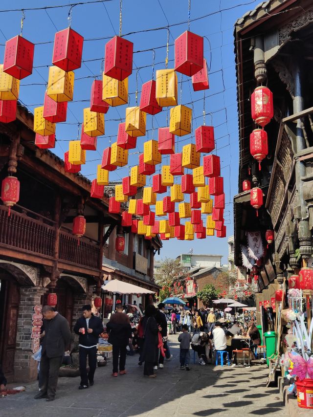 一进古城就被青瓦土墙、石板古巷吸引,街巷纵横交错,老建筑修缮得很有质感,红墙、木窗、雕花门头随手一拍都很出片。春节期间灯笼高挂,年味特别浓,白天阳光柔和,走在巷子里安静又治愈;傍晚登上城墙看日落,俯瞰整座古城,视野开阔又震撼;夜晚灯光亮起更是绝美,暖黄灯笼配上古色古香的建筑,氛围感直接拉满。