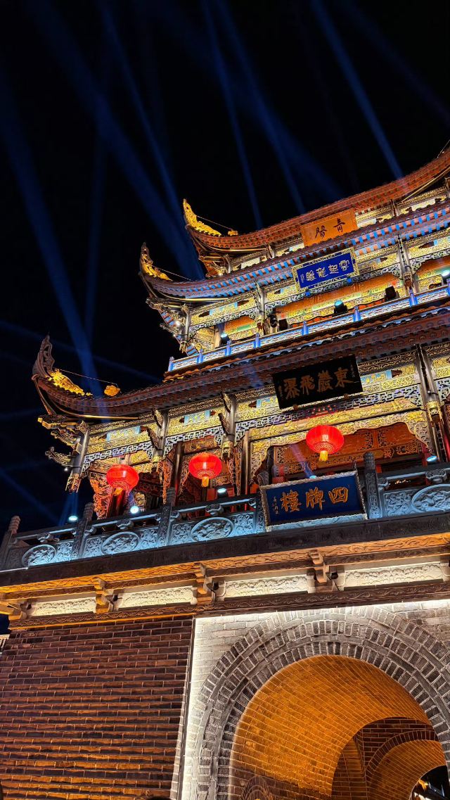 🎇夜晚的古城别有一番韵味,灯火辉煌,宛如白昼。城楼上的灯光秀美轮美奂,与古色古香的建筑相得益彰,让人仿佛置身于梦幻之中。在涌泉街的灯笼长廊拍照,随便一拍都是大片。