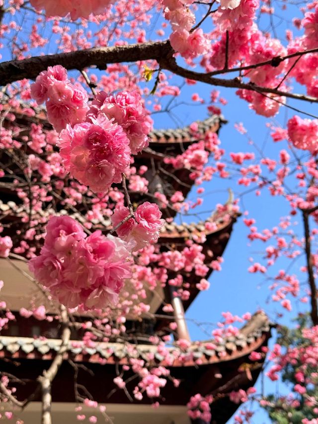 5分 超棒自然景观美:寺内樱花树高大粗壮,花朵繁茂,将寺庙的屋顶、墙壁都染上粉色。站在高处俯瞰,漫山遍野的樱花与周围山水构成绝美的画卷。阳光透过樱花树枝洒下,花瓣随风飘舞,宛如蝴蝶,与寺庙静谧氛围相辉映,充满诗意与浪漫。