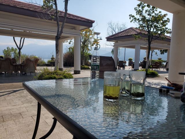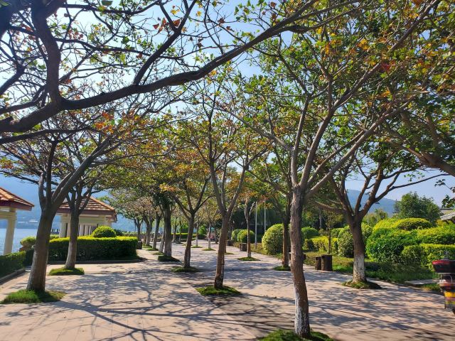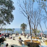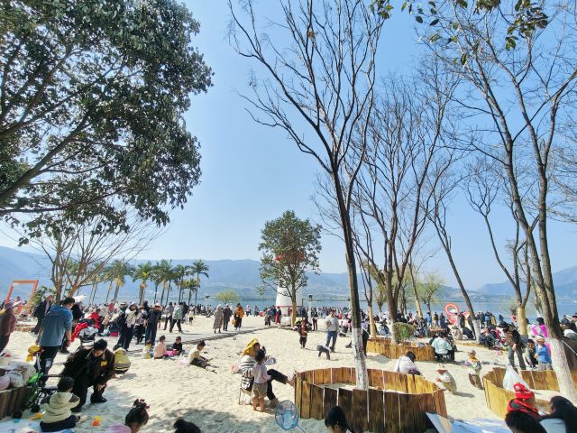 🎈环境:沙滩就在邛海边上,沙子又细又软,踩上去很舒服。周边的绿化做得很好,各种热带植物郁郁葱葱,还有很多鲜花绽放,看着就让人心情愉悦。湖水清澈见底,波光粼粼的,远处的山峦连绵起伏,和蓝天白云相映成趣,随手一拍都是大片。