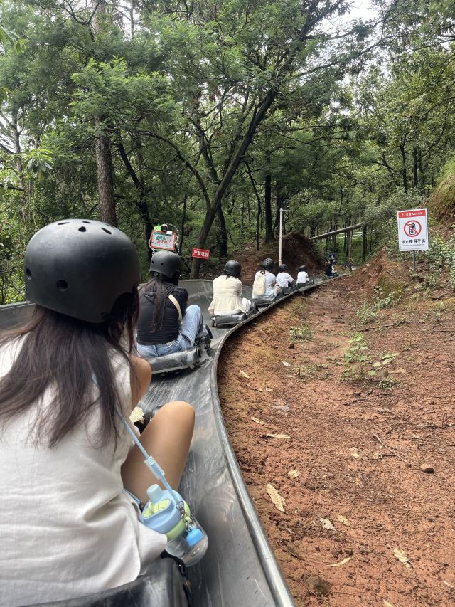 泸山的滑道与索道票不到山顶直到半山腰,步行爬山道的开始,实在是没有太大的意义,从山门走到登山点光福寺也就一刻钟。上山的大部分寺庙都有观景平台,不过过了三清观攀登难度就大了,后面几乎全是台阶,连续一个小时左右到山顶吧。
