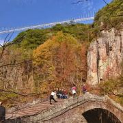 微信小程序丹山赤水位于余姚城区西南45公里处,属于四明山的一部分。这里因“红岩印溪水”而得名,景色非常美,山中还有不少道教遗迹。丹山赤水适宜时节是秋冬之际,不仅有满山的红叶,也是吃柿子的好时候,不少周边游客自驾过来体验农家乐趣。