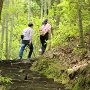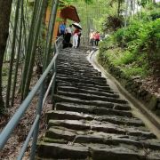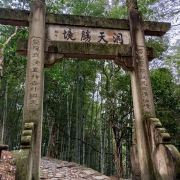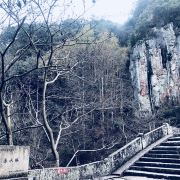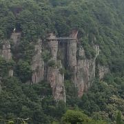 上山的路比较陡,总的来说是一条环线,并不用走回头路。向上约三分之一处,有一个名为“金丹九炼”的山洞,相传是四明道祖师爷炼丹修真的地方。越往上山势越陡,正当体力难支时,有一倚天廊,正好在廊内休息。攀上山岭,有一尊巨大的太上老君石,也是山中的标志景观之一。由此走过一段相对平缓的山路,就到了四明道观,这也是四明山中规模相对较大的道观,可入内参观。山顶有个撒药台,伸在悬崖峭壁上,值得一看。