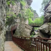 除了边走边看欣赏自然风光,景区内还有不少户外项目可供游客选择。你可以挑战一下自己的胆量,玩一下高空滑索(30元/人);或者在景区内一块平坦、近乎垂直的崖壁上玩玩攀岩(30-60元/位);或者约几个好友,划划橡皮艇,荡漾在景区内的五龙潭中(20元/30分钟/船)。