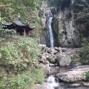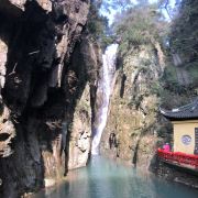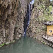在雪窦山旅游集散中心乘交通车至三隐潭,依次游览上隐潭、中隐潭、下隐潭,这里是雪窦山精华的部分,一条溪流在峡谷中形成三个潭,尤其是晴天的时候,下隐潭还可能看到彩虹。