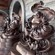 妙高台陈列着一些历史文献,自古就是雪窦山登高揽胜和避暑的圣地,这里有一个平台,视野广阔,是观赏风景的好地方。站在妙高台上,远处亭下湖的景色可尽收眼底。从妙高台后面的小路一路下行,经过张学良幽禁地,步行十来分钟便是雪窦寺,这里是弥勒佛的道场,寺院是新修的,不过这里有一尊金光闪闪的露天弥勒大佛,不少人来这儿“抱佛脚”求平安。雪窦寺门口有交通车站,可乘车返回集散中心。