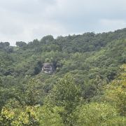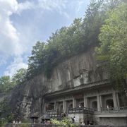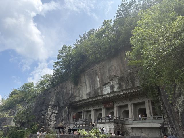 在游览步道上远远能看到山中的绿树间有一笑逐颜开的弥勒石像,若是走到附近,你会发现露天弥勒一侧,还有六尊造型各异的小石雕弥勒,很多游客喜欢在此拍照留影。旁边的五百罗汉洞也可一并看过。右边较远的地方还有栖光净院、般若谷、地藏殿等景点,可一路走过去,绕到经典的大佛殿,或者直接从中间的主路爬上去,距离更近。
