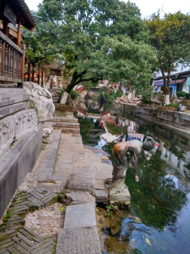 水街是有些秦风和江南水乡混搭的建筑,栗家古桥、三将军墓、雕塑长廊、马嘶桥、湖广会馆和民俗风情街错落分布于水街两侧。你也可以看见休闲的人们,在洗河边洗菜、洗衣服、聊天,很宁静的生活。这里也是灵渠的后门。