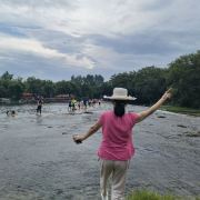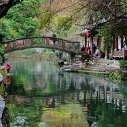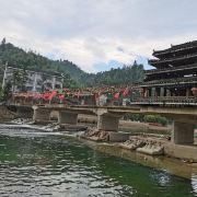 建议的游览方式是顺着清澈的河流从景区后门进入,拎着鞋经“大小天平”走到“铧嘴”,最后登上临源楼俯瞰梳水利工程全貌,临源楼的观景阁是俯瞰整个水利工程全貌的位置所在,你可以清晰的看到湘漓二水由此分流。