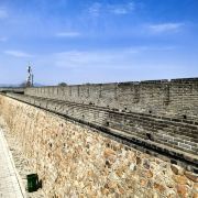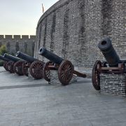 微信小程序兴城古城建于明代初期(1428年),位于兴城市城西,是我国保存较完整的四座明代古城之一(另三座是西安古城、江陵县荆州古城、山西平遥古城)。古城中可以看到瓮城、兴城古城景区-钟鼓楼、炮台、牌坊等古迹,还可以去蓟辽督师府、兴城文庙等建筑参观,登上城墙则可俯瞰城内全景。古城曾为边防重地,明将袁崇焕曾驻兵于此屡败清兵,如今漫步在古城内,依稀可以感受到五百多年前的硝烟。兴城古城为正方形,筑有灰色的城墙,城墙的东南西北四面各有一座城门。从古城南门(延辉门)进入,一直到兴城古城景区-钟鼓楼,是一段步行街,两侧是各种小商店,卖什么的都有。从城门一侧登上斑驳厚重的城墙,可俯瞰城门外的半圆形瓮城以及城内全貌。每一面的城墙约800米长,城墙四角筑有炮台,可以看到威武的红夷大炮。从南门向北走到兴城古城景区-钟鼓楼,会经过两座石牌坊,是明朝崇祯皇帝为辽东将领祖氏兄弟所建。兴城古城景区-钟鼓楼位于古城中央,登上兴城古城景区-钟鼓楼可环望古城四方,在第二层的出土文物陈列馆可以参观当地的文物。从兴城古城景区-钟鼓楼往东门(春和门)方向走,会经过蓟辽督师府,是古城必体验景点,这里是当年袁崇焕受命督师蓟辽、驻守宁远(今兴城)时所建的官署。府内可见到复原的大堂、花园、点将台等场所,以及官府、兵器等展品。古城内还有东三省古老的文庙——兴城文庙,以及城隍庙、兴城古城景区-将军府、周家老宅、兴城博物馆等景点,如果对历史有兴趣,可以买张景点联票都去看看。兴城古城不大,里面基本是清一色的砖瓦房,大多都是卖小商品的店铺,还有餐馆和海鲜店。如果不看景点,大约1个小时就可以逛完。