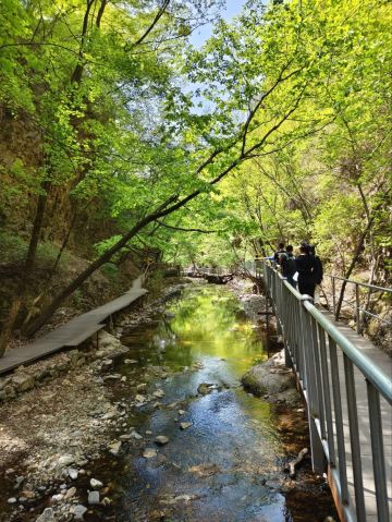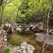 5分 超棒从兴隆县出发,公路就开了不到10分钟就进入九龙潭景区的村子,继续前进了大概15分钟吧,就到达九龙潭景区停车场了。还是得开车去,没有其它交通工具可以到达。开评价说人不是特别多,但是我们是周日去的,入口处人还是挺多的,进景区后人流慢慢散开后还好一些。总体来说,夏天去那里还是挺凉快的,孩子还可以玩儿一下水,捡一些漂亮的石头啥的。也有需要走台阶的地方,但是大部分路还是比较平坦的。游览方面来说,到分叉的地方,如果选择往霸下潭那边走,各个潭之间的距离还是相对来说比较近,如果选择往困牛潭那边的话,需要走的路就比较长一些了。景区里面卖的10块3根的玉米挺好吃。累了休息的时候可以尝尝。