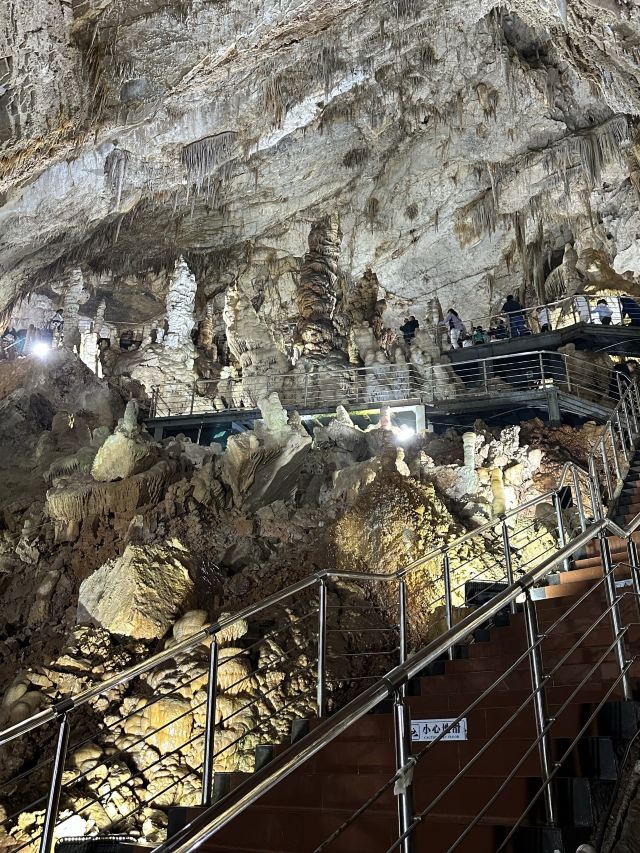 下高速一条长长的坑洼不平的村道,双向全是渣土车,市政路面连井盖都没有!一路到景区全是土!到景区门口就有人举着收费牌过来收钱,问就是公家收的,扫码显示溶洞停车场不是企业名称。收了钱就没人理你了自己转悠吧什么也不告诉你。购票没有任何提示,走700米进二道门才被告知小孩票要到外边买!婚宴跟景区门口摆,旅游反而没位置吃饭,女服务员一个个哭丧着脸,问什么菜都不知道。穷乡僻壤收费标准一线城市化,服务水平落后村镇化。当地文旅可能就是这么提的要求,真是上?了台面。顺便说一句带小孩的多穿一件洞里冷。
