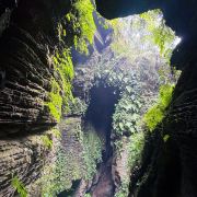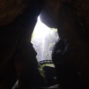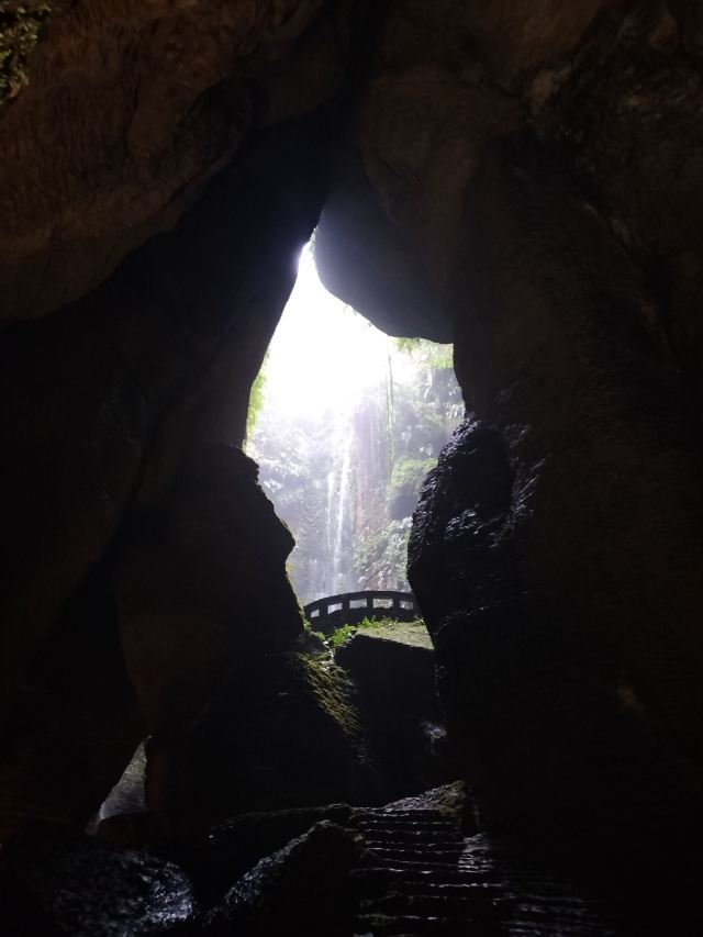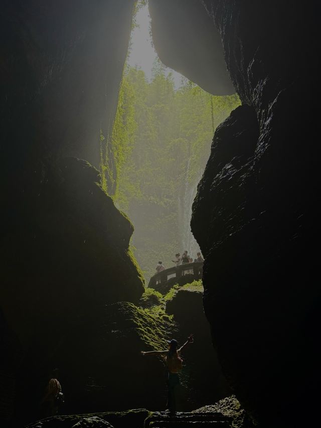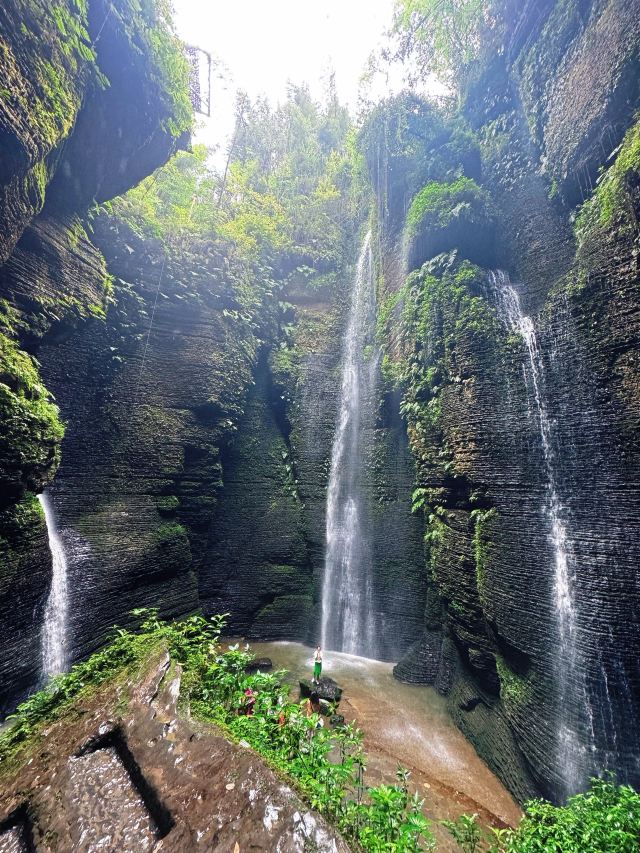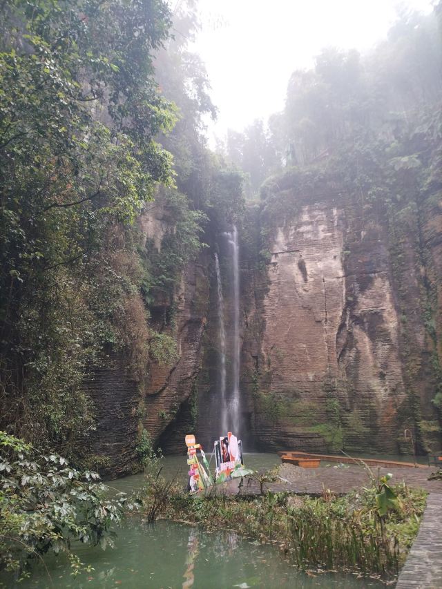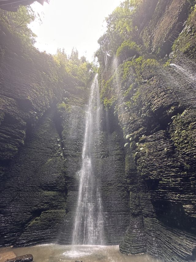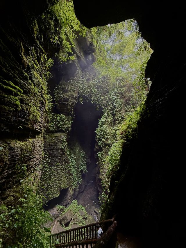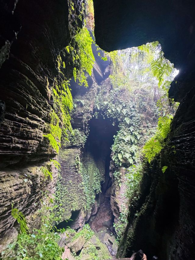 进景区就有大大小小的瀑布和茂密的竹林,走到飞雾洞简直惊为天人!直达地心的岩洞在正午阳光照射下,充满了密林地洞的神秘感,到达洞底飞瀑扑面而来,语言很难描述的震撼。